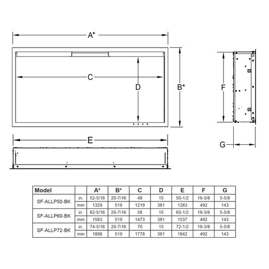SimpliFire Allusion Platinum 72 Linear Electric Fireplace - SF-ALLP72-BK