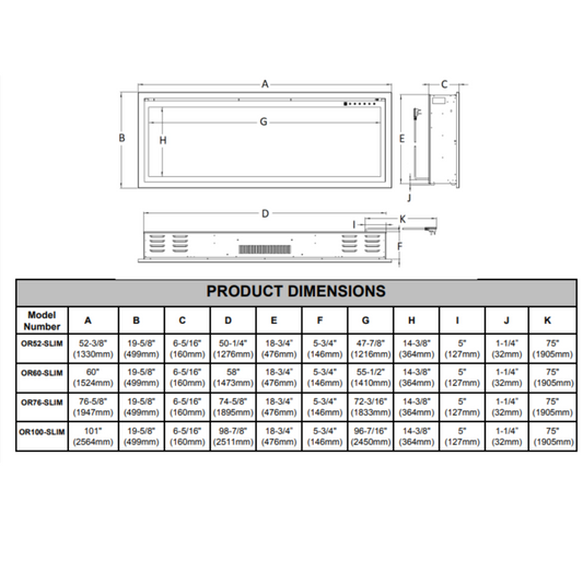 Modern Flames Orion 76 Inch Slim Series Electric Fireplace - OR76-SLIM
