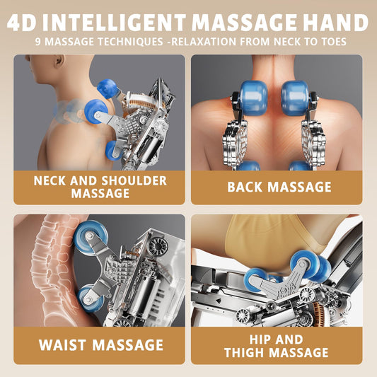 HealthRelife 4D Massage Chair Full Body Zero Gravity Recliner - 55“ SL-Track,15 Auto Modes,(Beige)