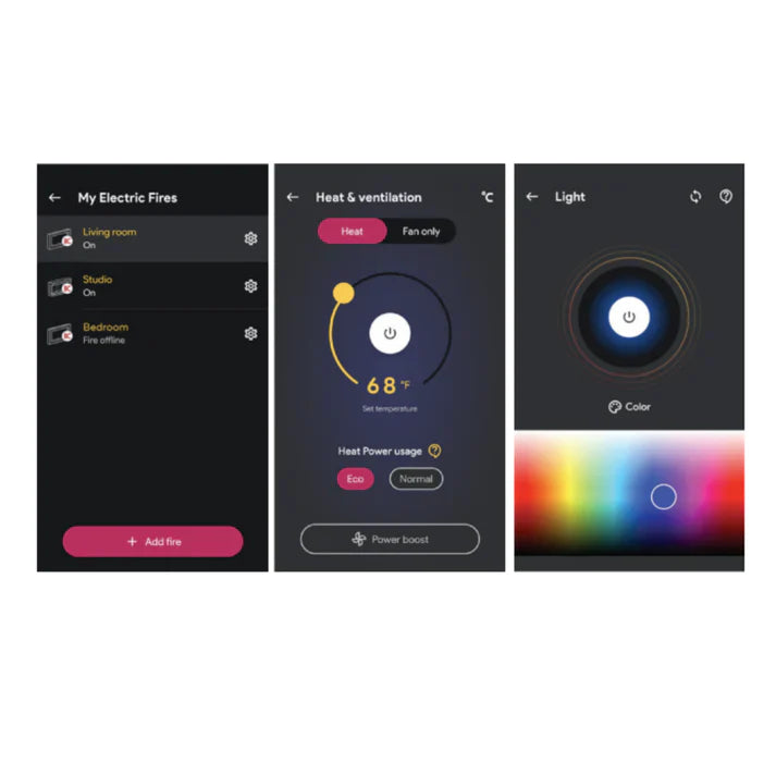 • Ambient Light Sensor – Automatically adjusts firebox light to suit the room day to night