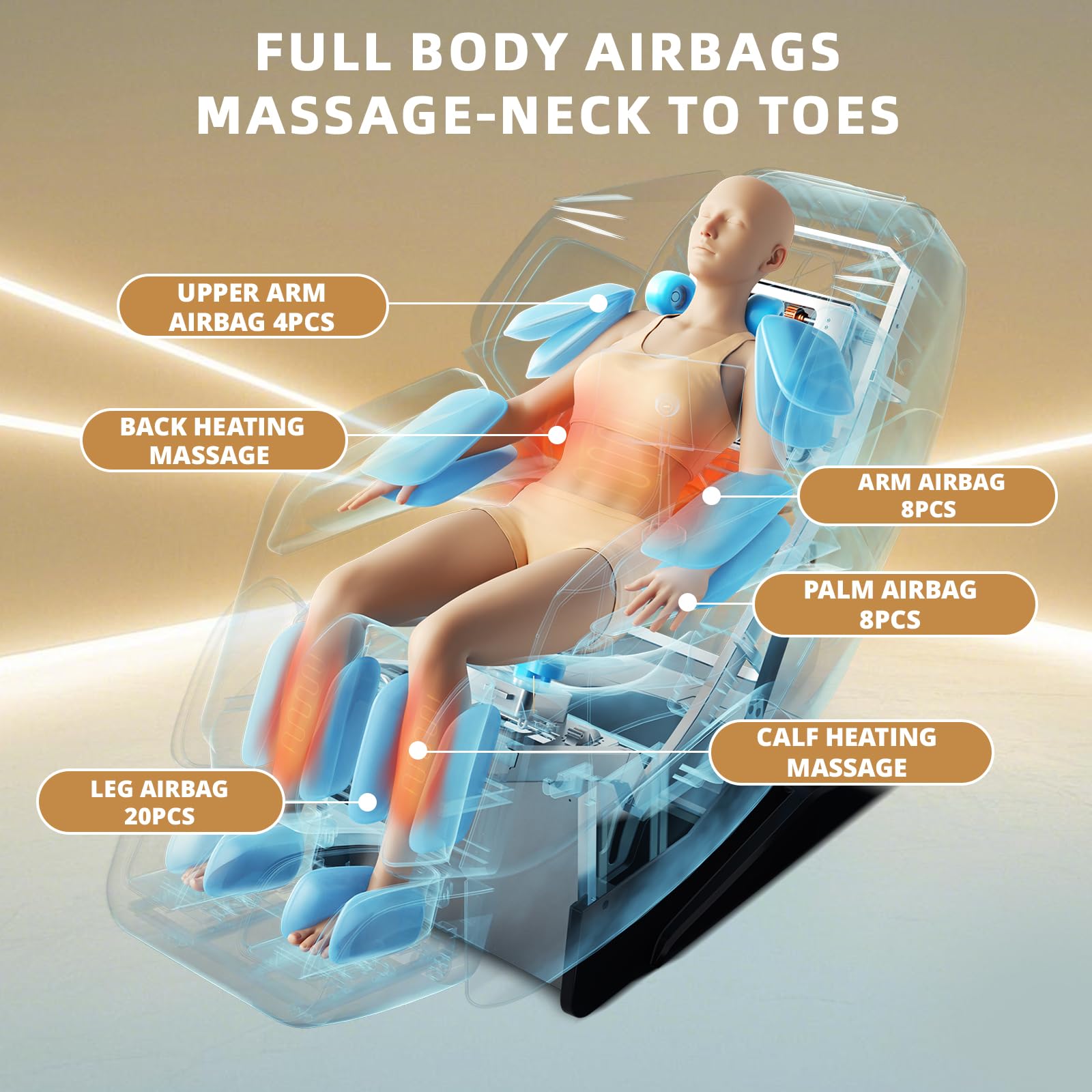 HealthRelife 4D Massage Chair Full Body Zero Gravity Recliner - 55“ SL-Track,15 Auto Modes,(Beige)