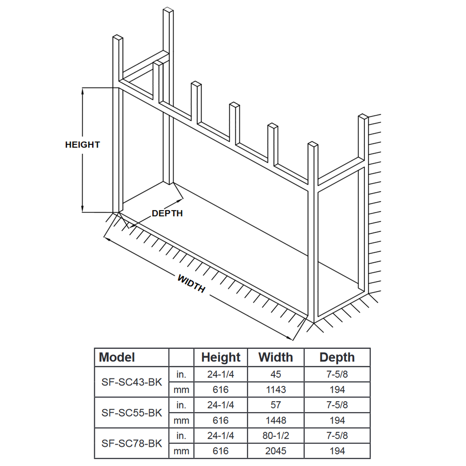 SimpliFire Scion 55 Inch Wall Mounted Electric Fireplace - SF-SC55-BK